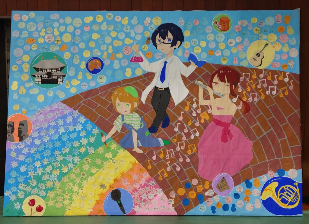 全校生徒で作り上げたビッグアート‼子どもたちの将来の夢が大きな作品として展示されました。