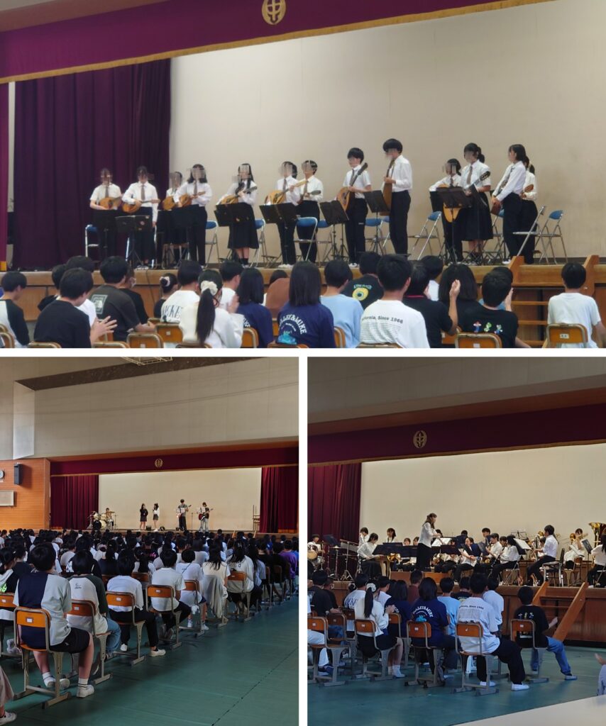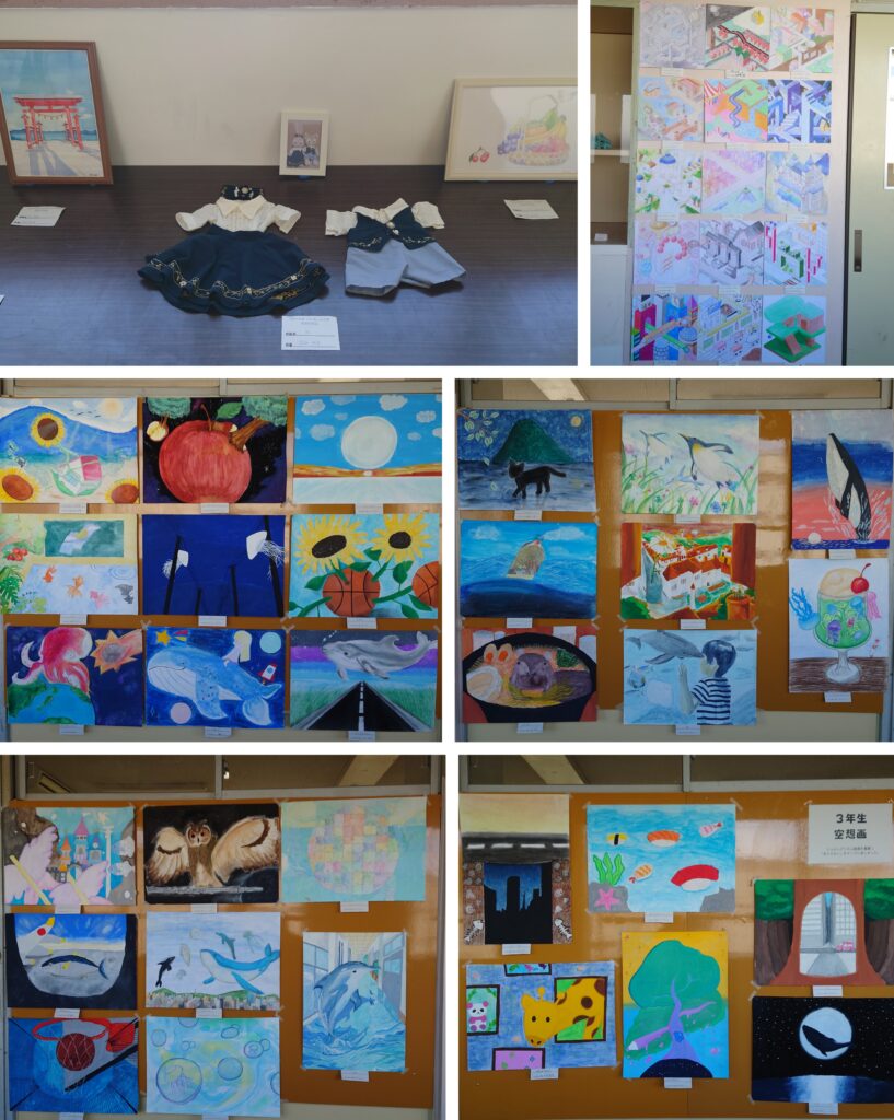今年は、オープニングセレモニーと各学年、夜間中学生の代表者による人権作文発表会はMeetで行われました。その後、体育館でギター・マンドリン部の美しく心地よい音色の演奏会と吹奏楽部の力強く迫力満点の演奏会、新企画の有志による発表を鑑賞し校内に展示された人権ポスターや、美術・イラスト部のピクトグラム、空想画などの作品を見学できました。